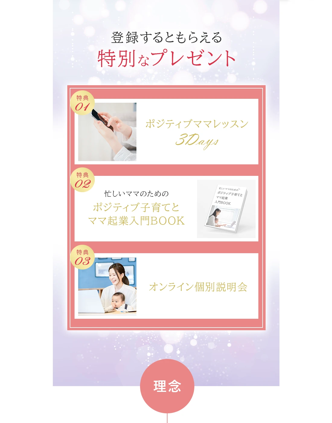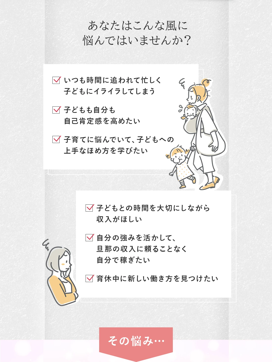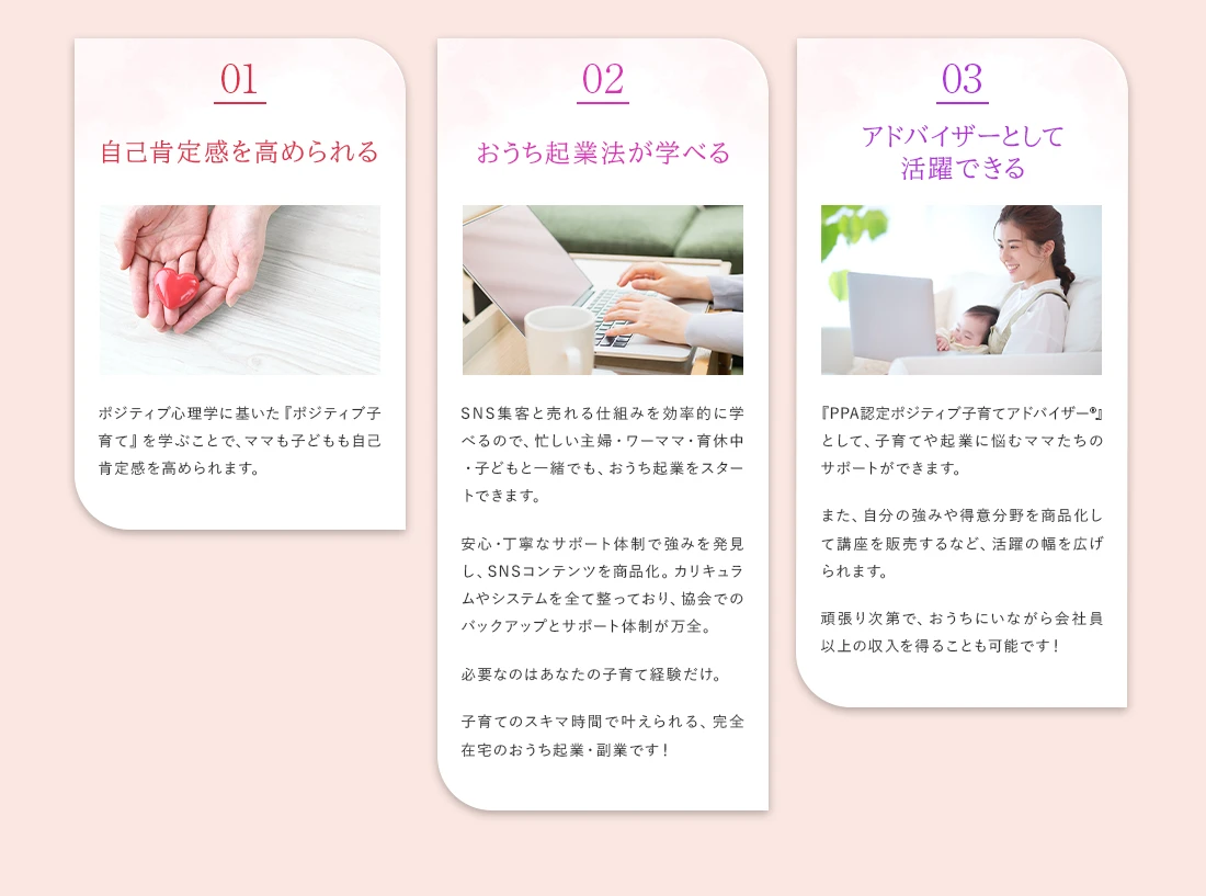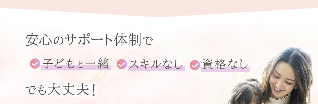 育児や家事に忙しいママだからこそ、「時間のゆとり」「心のゆとり」「お金のゆとり」を手に入れて、ポジティブな働き方を始めてみませんか?