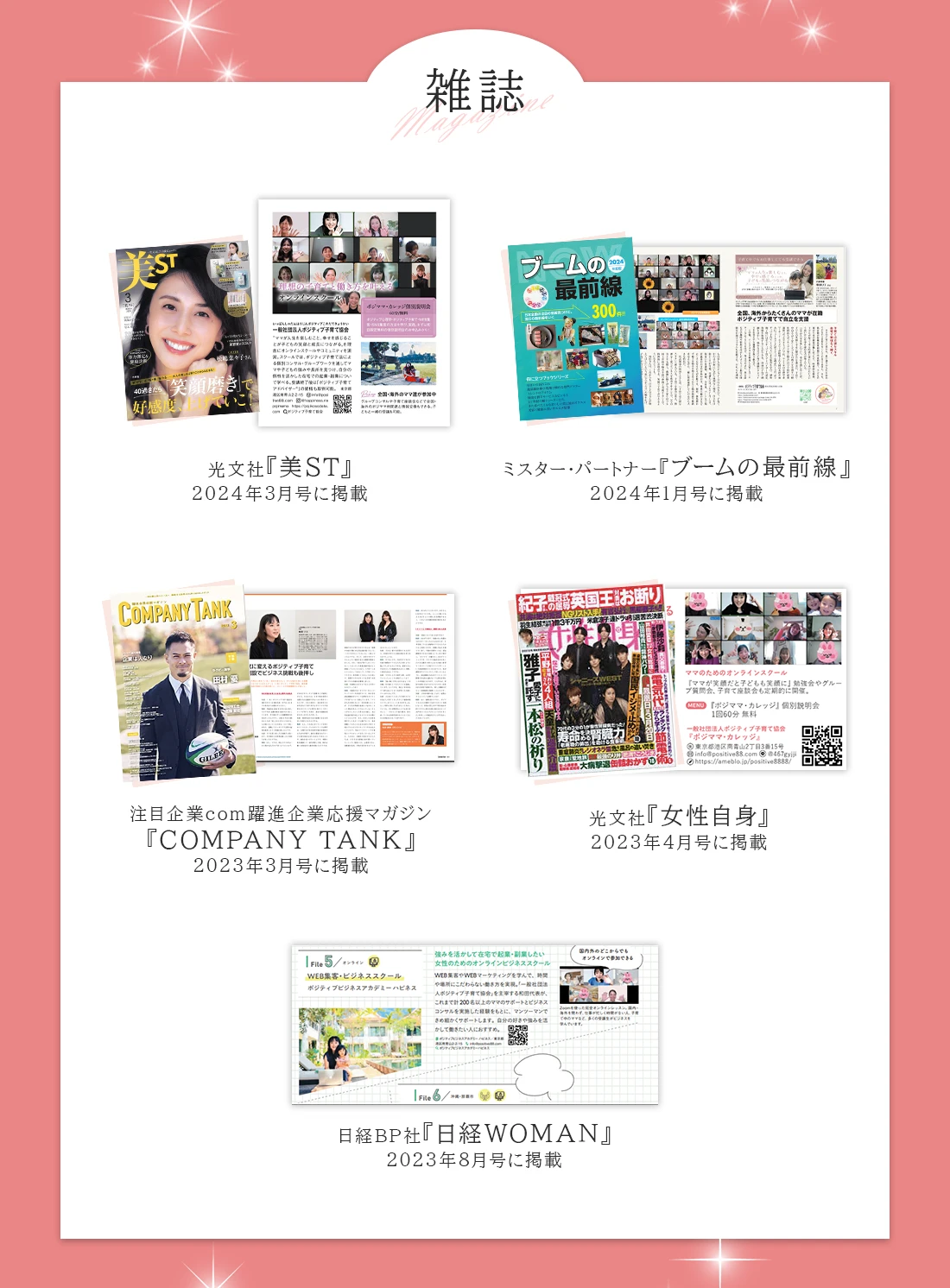現在は、ママ向けのビジネスコンサル、法人コンサルのほか、ママコミュニティ『ポジママ・カレッジ』を運営中。全国から沢山のママさん達が参加してくれています。
