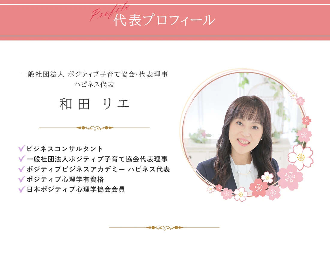 『ママが人生を楽しむこと、幸せを感じることが子どもの笑顔と成長につながる』を理念に『ポジティブ子育て協会』を設立。『他人軸』ではなく『自分軸』を大切に、をモットーにポジティブ子育てを伝えています。